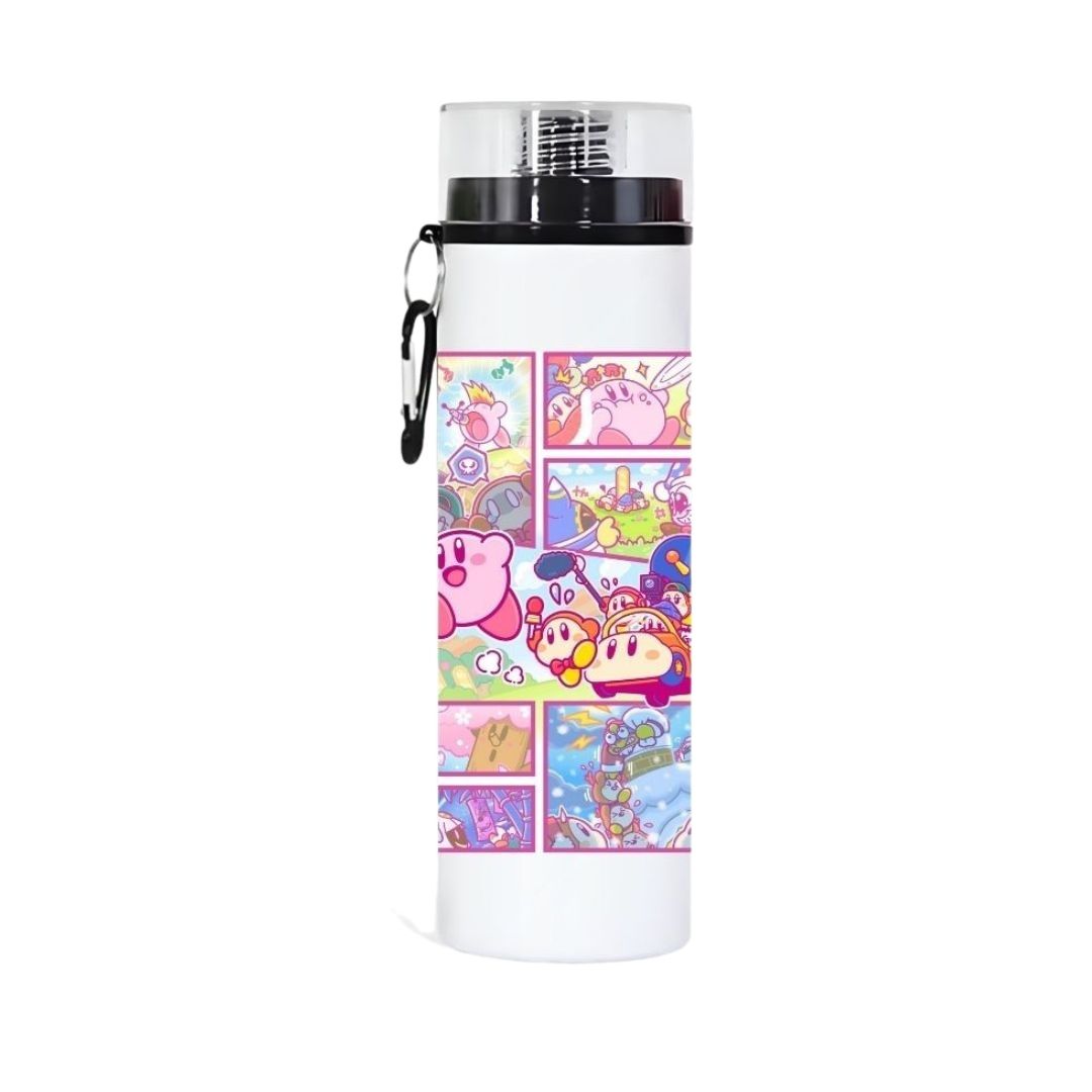 Botella de Agua Kirby, inspirada en el famoso personaje del videojuego, junto a escenas famosas y características de Kirby.