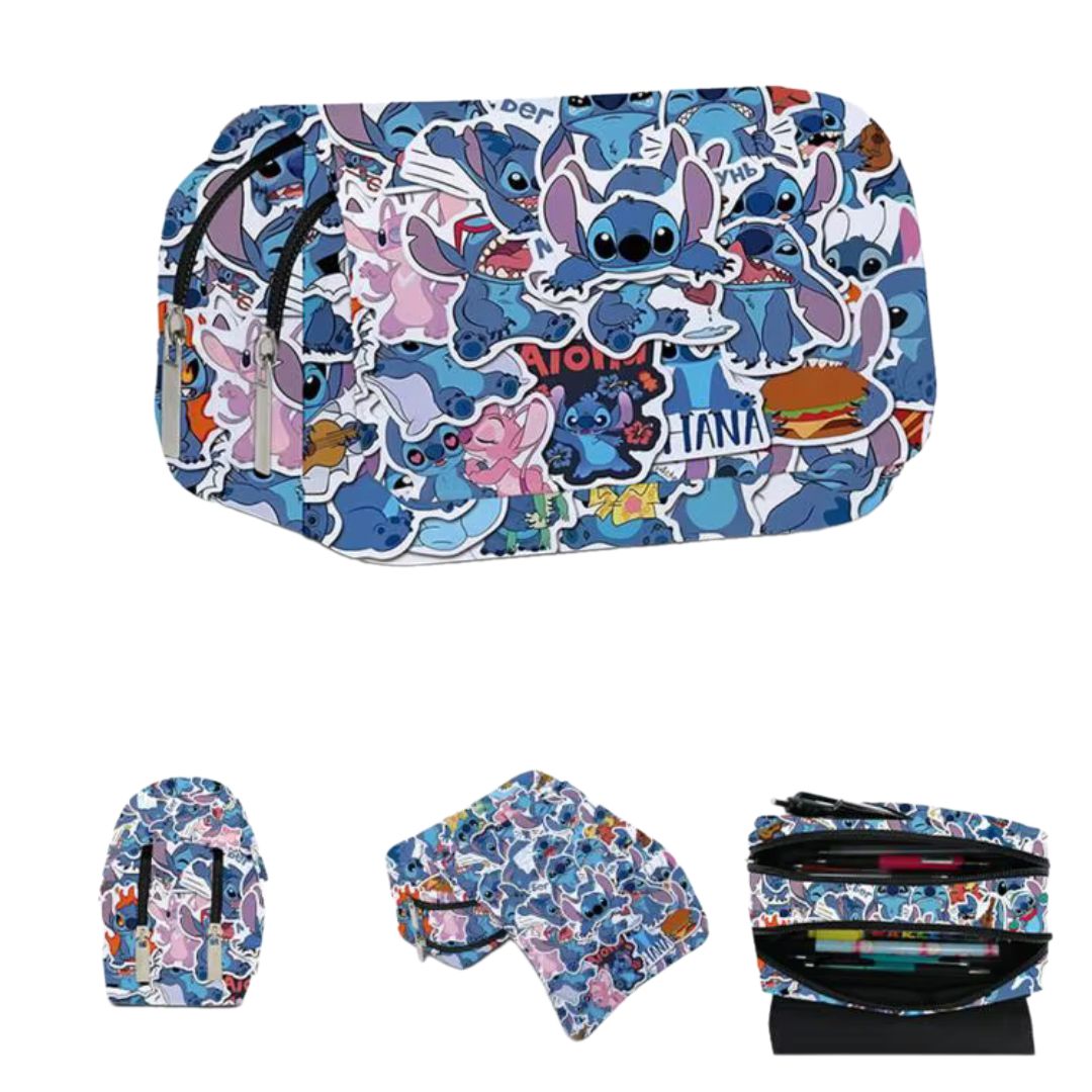 Estuche con diseño inspirado en Stitch, ideal para uso escolar o diario.
