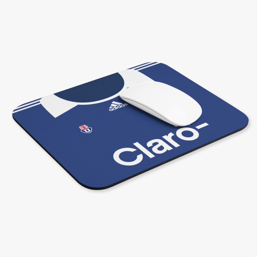 Mouse pad con diseño de la camiseta del club Universidad de Chile año 2012. Es una alfombrilla antideslizante, suave y cómoda para un mejor desempeño a la hora de utilizar tu mouse. Con un tamaño aproximado de 24 cm de ancho y 20 cm de alto, es el tamaño ideal para acompañar tu setup gamer, escritorio de trabajo o de estudio.