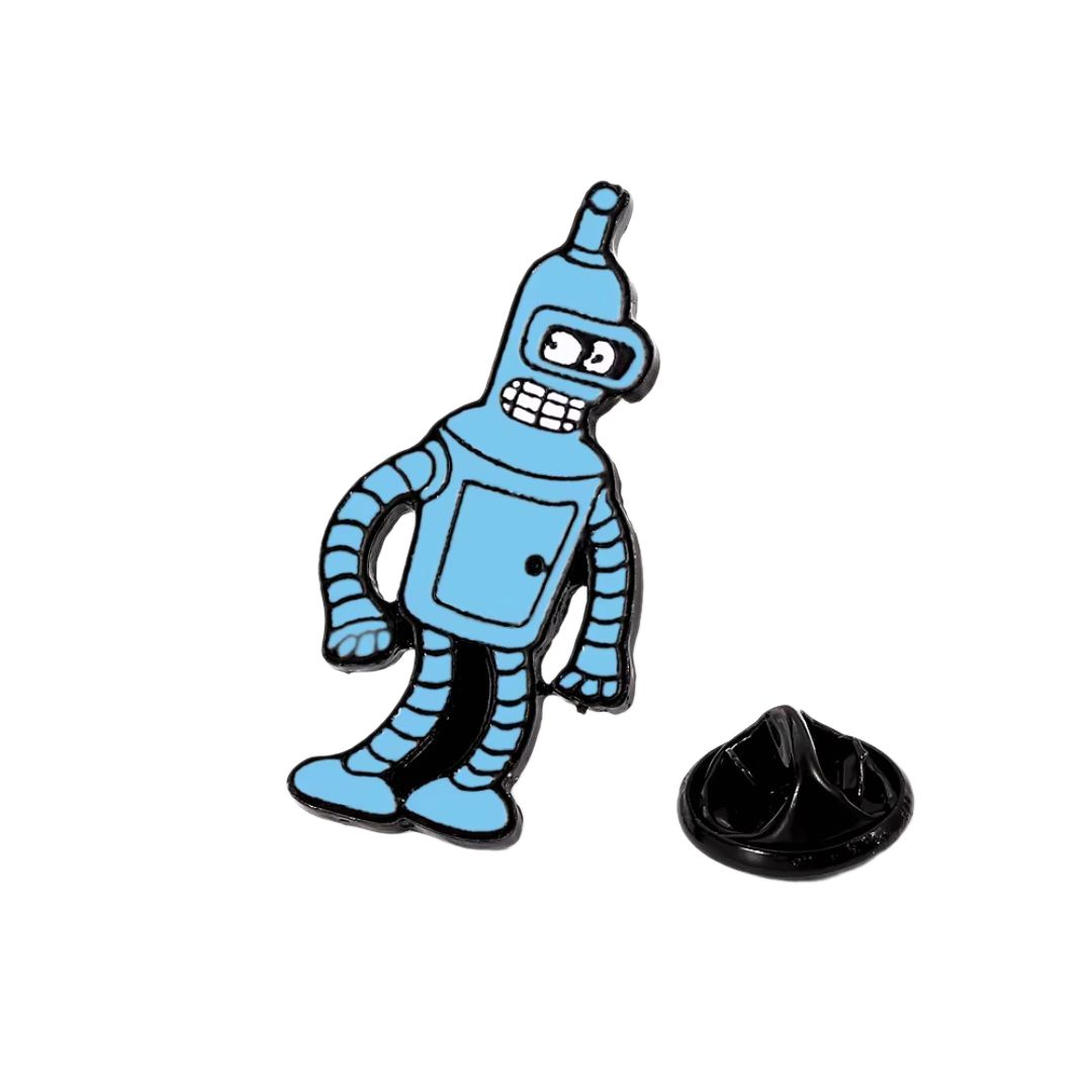 Lleva la irreverencia de Bender, el icónico personaje de Futurama, con este pin metálico de 3 cm de diámetro. Fabricado en metal de alta calidad, es el accesorio ideal para los fanáticos de la serie que buscan añadir un detalle original y llamativo a mochilas, chaquetas o cualquier prenda.