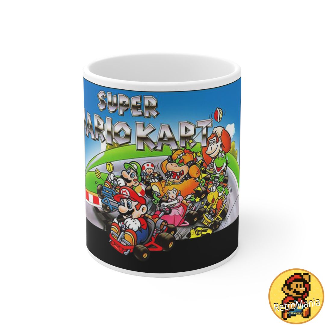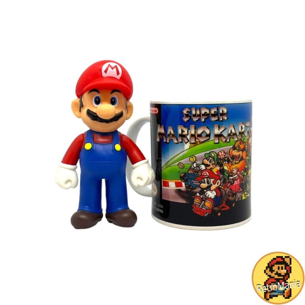 La taza, con diseño inspirado en Mario Kart, está hecha de cerámica y cuenta con una capacidad de 330 cc. Es resistente, cómoda de usar y adecuada para disfrutar bebidas calientes o frías.