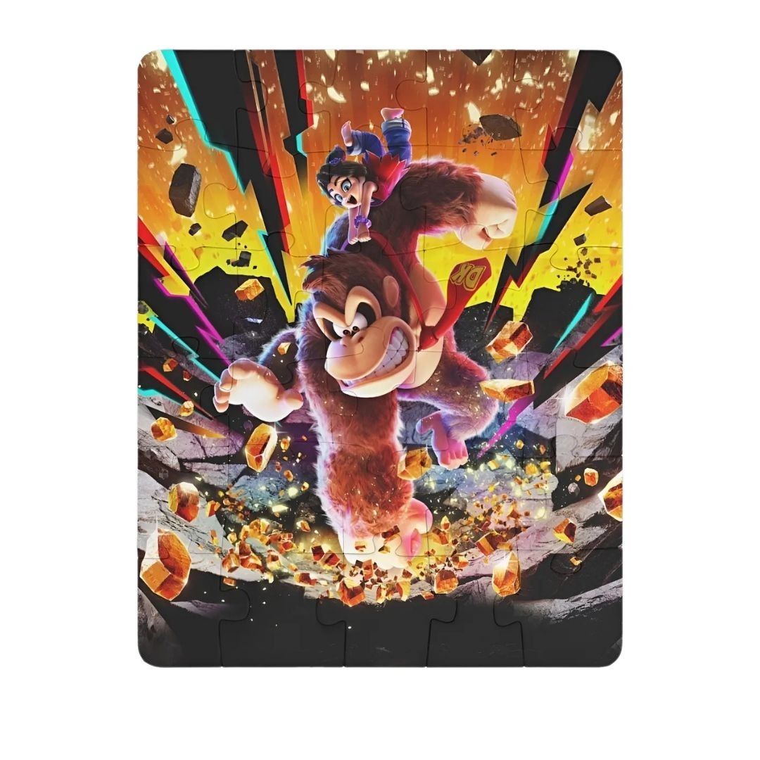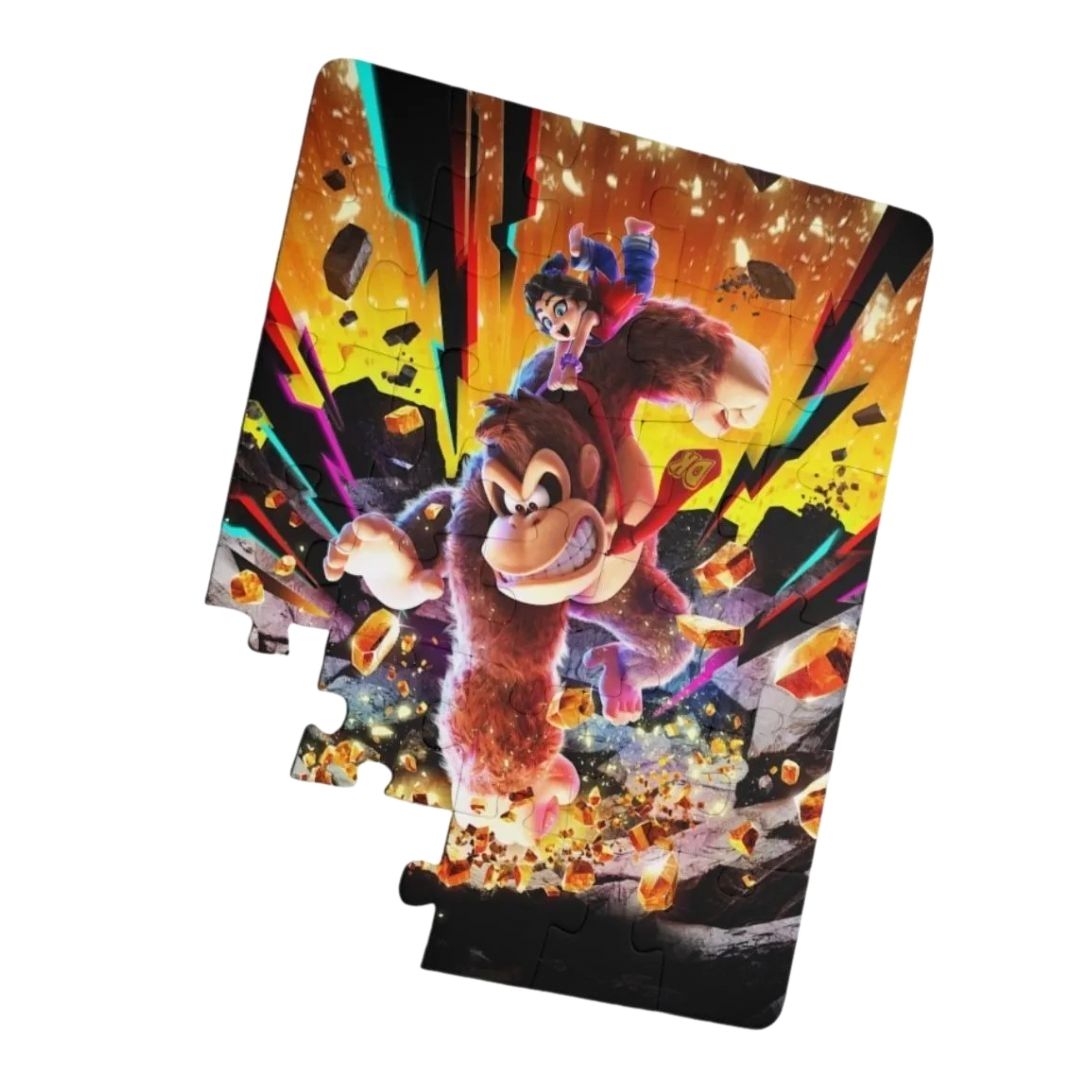 Diversión asegurada con este rompecabezas de Donkey Kong. Ideal para niños o fanáticos del videojuego, este puzzle de 30 piezas presenta una colorida ilustración del icónico gorila en plena aventura bananera.