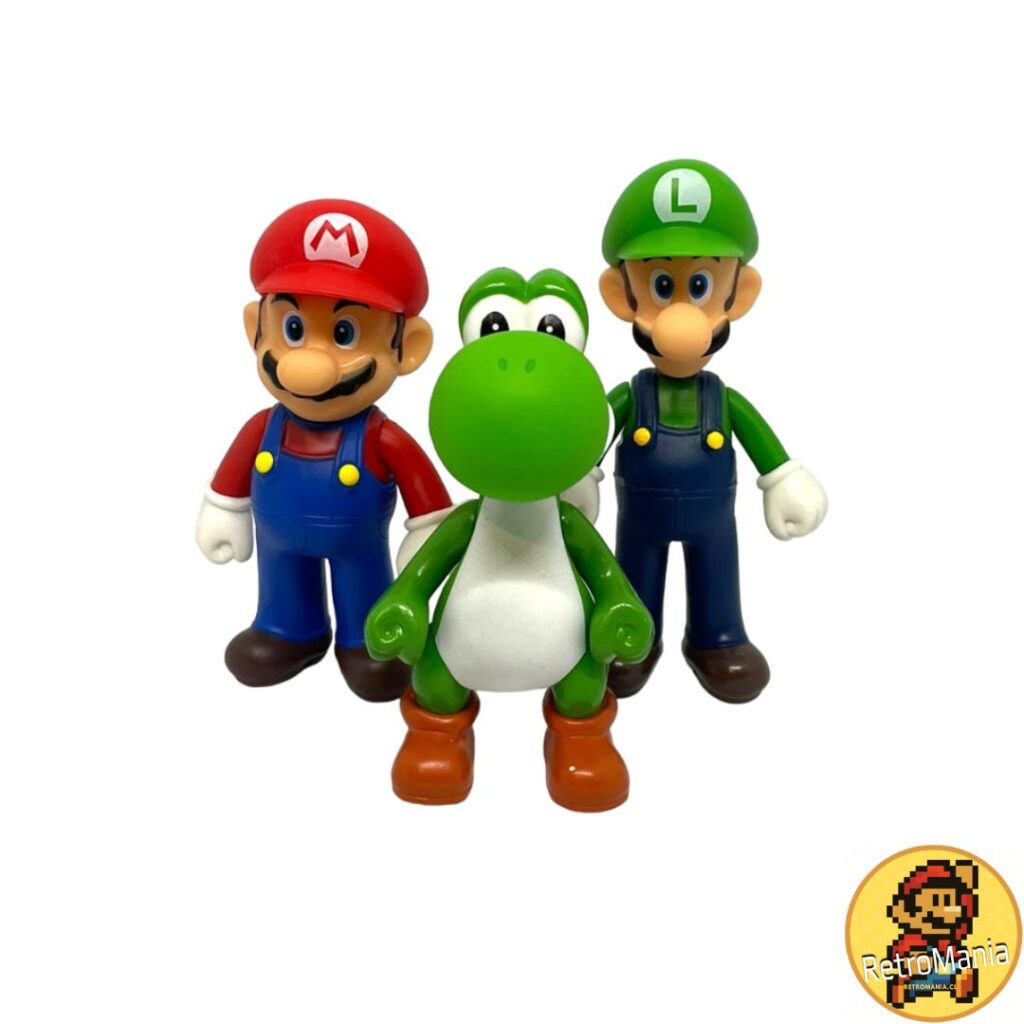 Disfruta de la diversión del mundo de Super Mario con este set que incluye tres figuras icónicas: Super Mario, Luigi y Yoshi. Cada figura mide entre 13 y 14 cm de alto aproximadamente y está fabricada en PVC de alta calidad, garantizando durabilidad y detalles precisos.