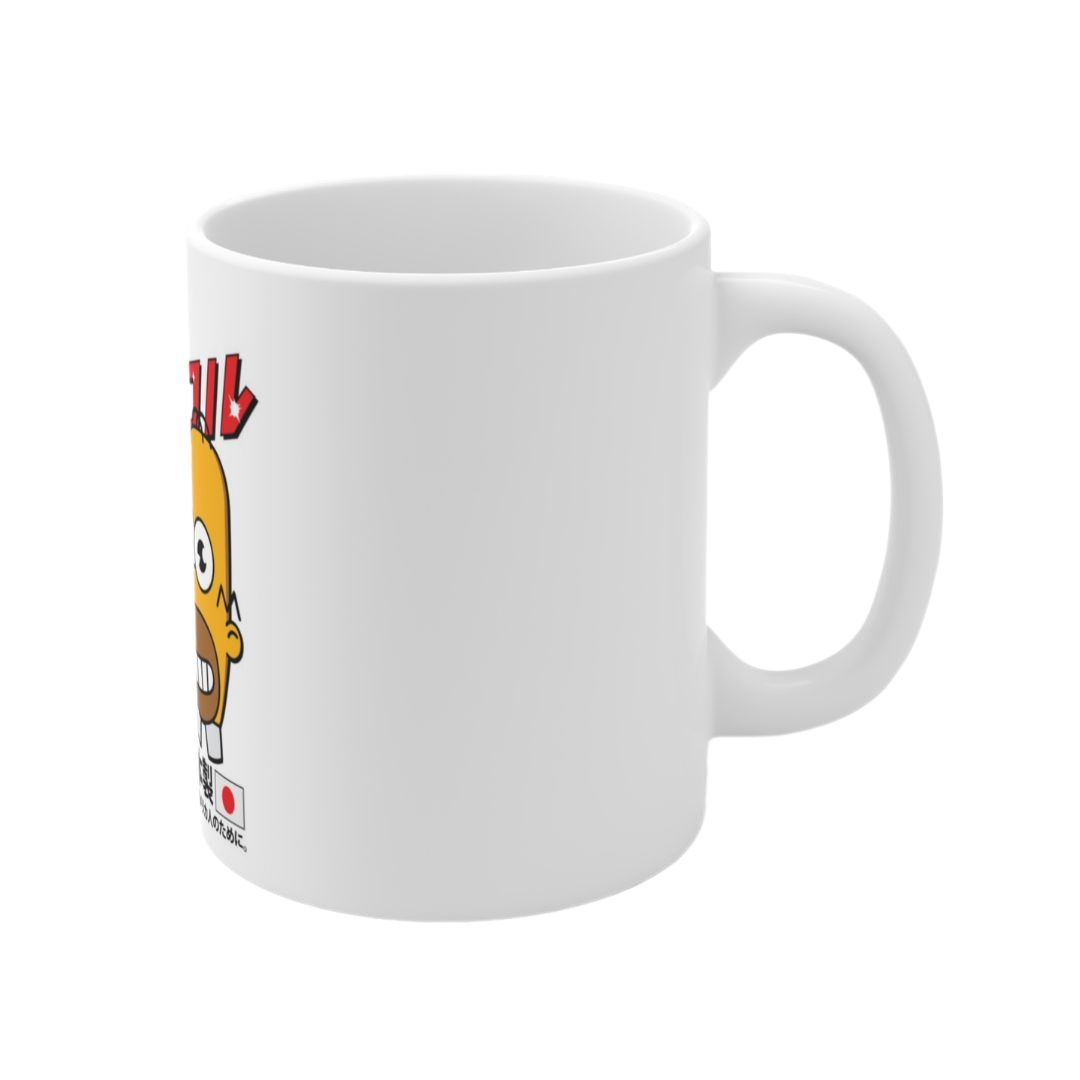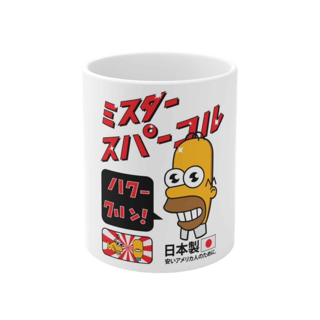 Taza Mister Chispa, inspirada en el icónico Homero Simpson. Fabricada en cerámica de alta calidad y con una capacidad de 330 cc, es perfecta para los fanáticos de la serie animada.