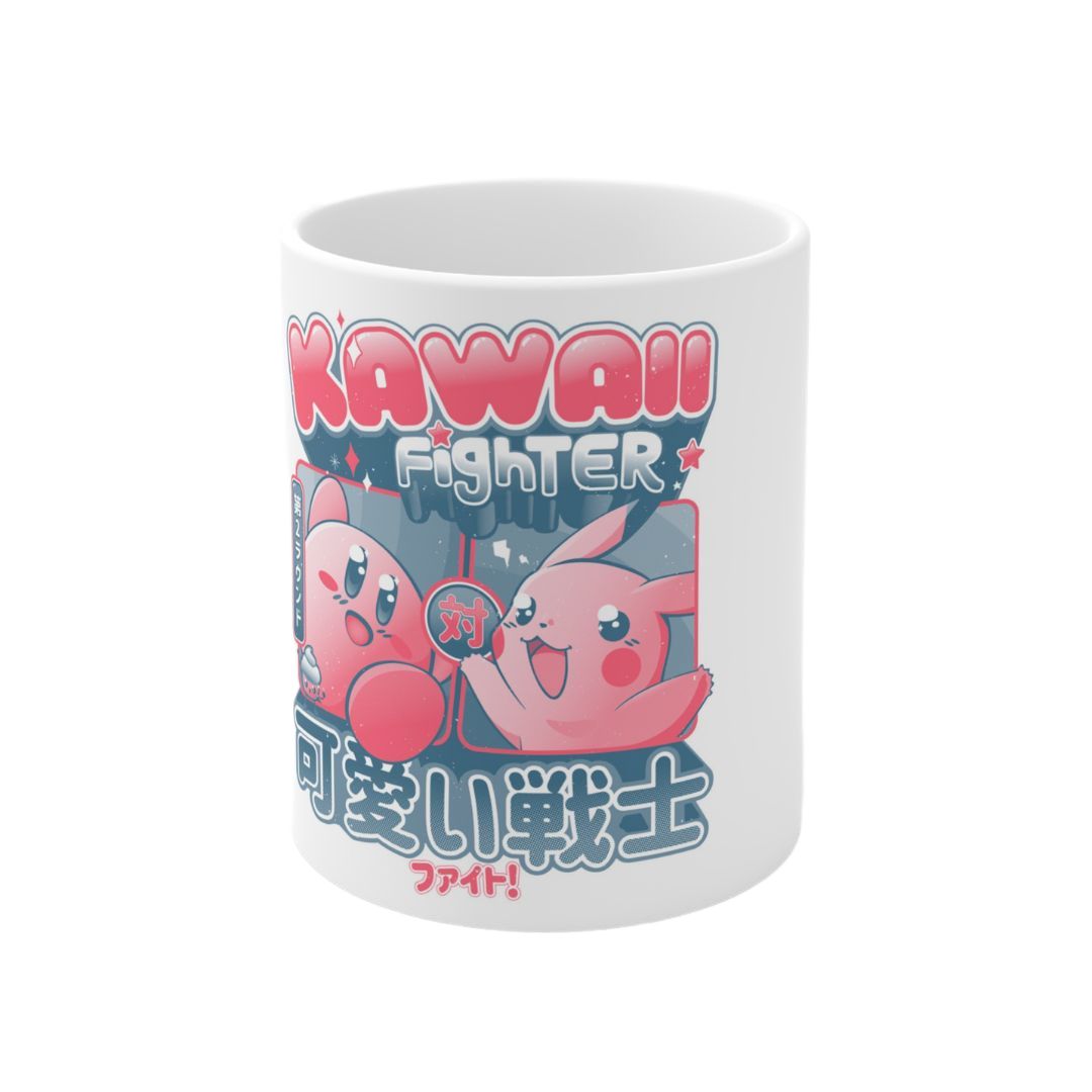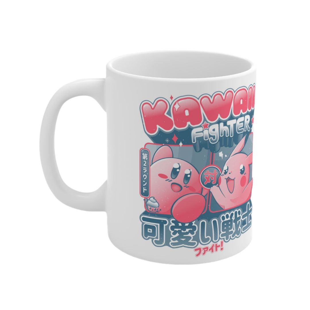 Haz que tus mañanas sean más entretenidas con la taza Kirby vs Pikachu Kawaii Fighter, un artículo ideal para quienes aman los videojuegos y el estilo kawaii.