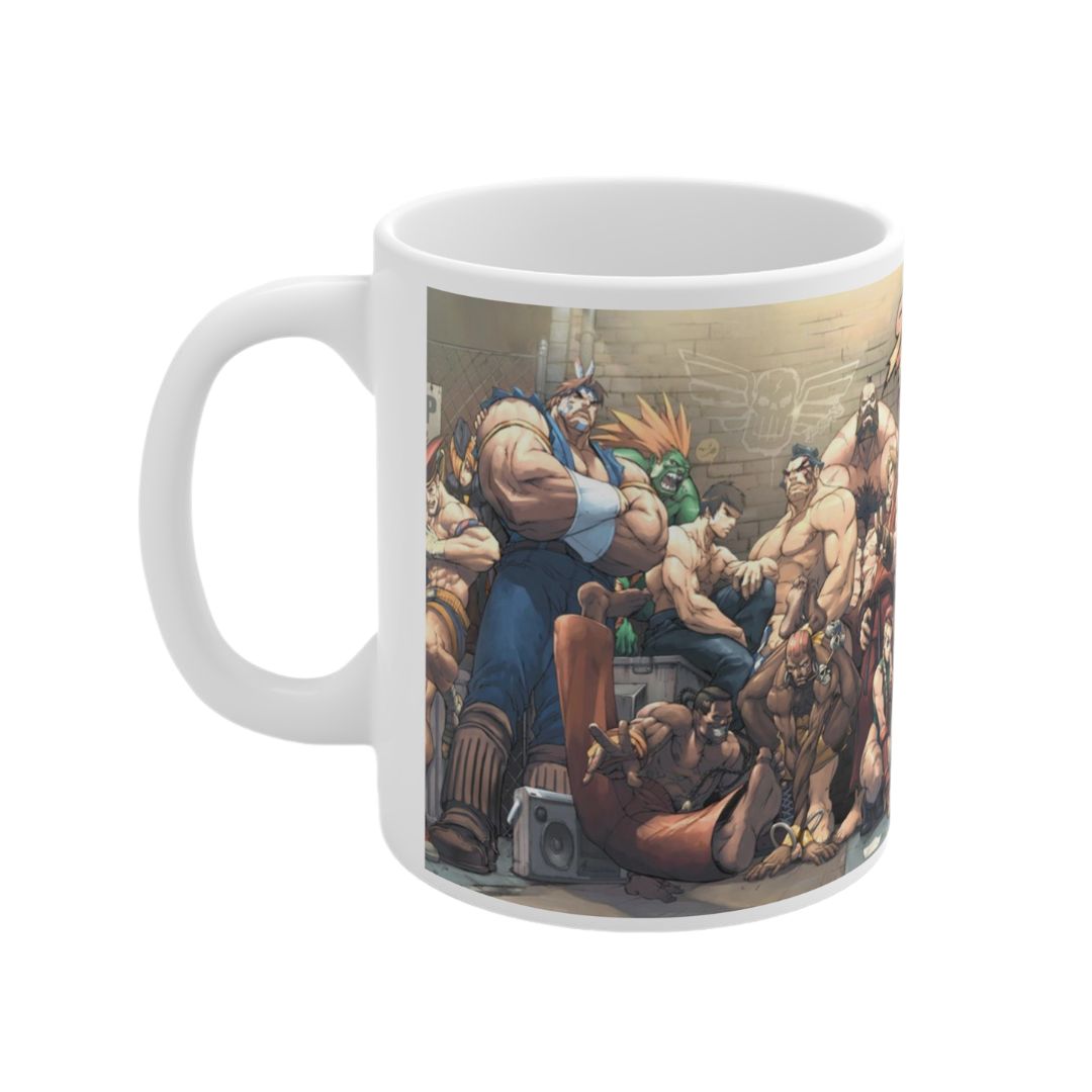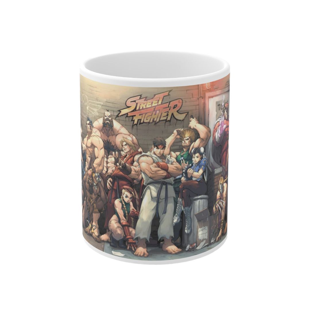 La taza inspirada en la franquicia de videojuegos Street Fighter cuenta con una capacidad de 330 cc y presenta un llamativo diseño con diversos personajes emblemáticos de esta legendaria saga de peleas.